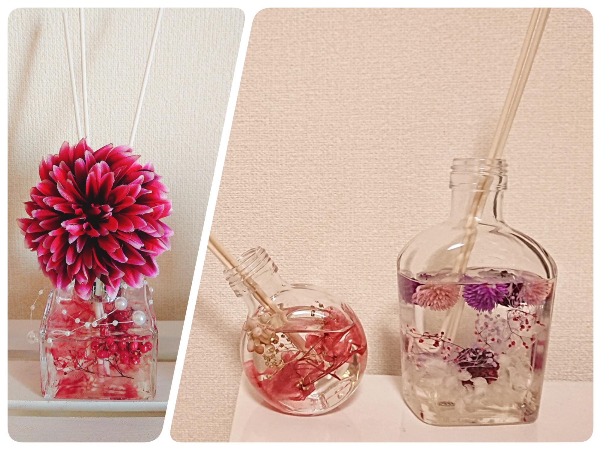 | 手作り体験教室 | =ファブリックステンシル体験教室= 布に絵を描くファブリックステンシルの体験です。コットンギャザーバックにステンシルで絵を描いてオリジナルバックを作ります。 材料費:1,000円 =押し花コンパクトミラー= 花を選んでレジン液で着色。オリジナルコンパクトミラーを作ってみませんか?様々なお花の中から選んで頂けます。 材料費:800円 =フレグランスハーバリウム手作り体験= 今人気のハーバリウムが香りと共に楽しめるフレグランスハーバリウム。何種類かのオイルからお好きな香りをお選びいただけます。 材料品:1,000円 |