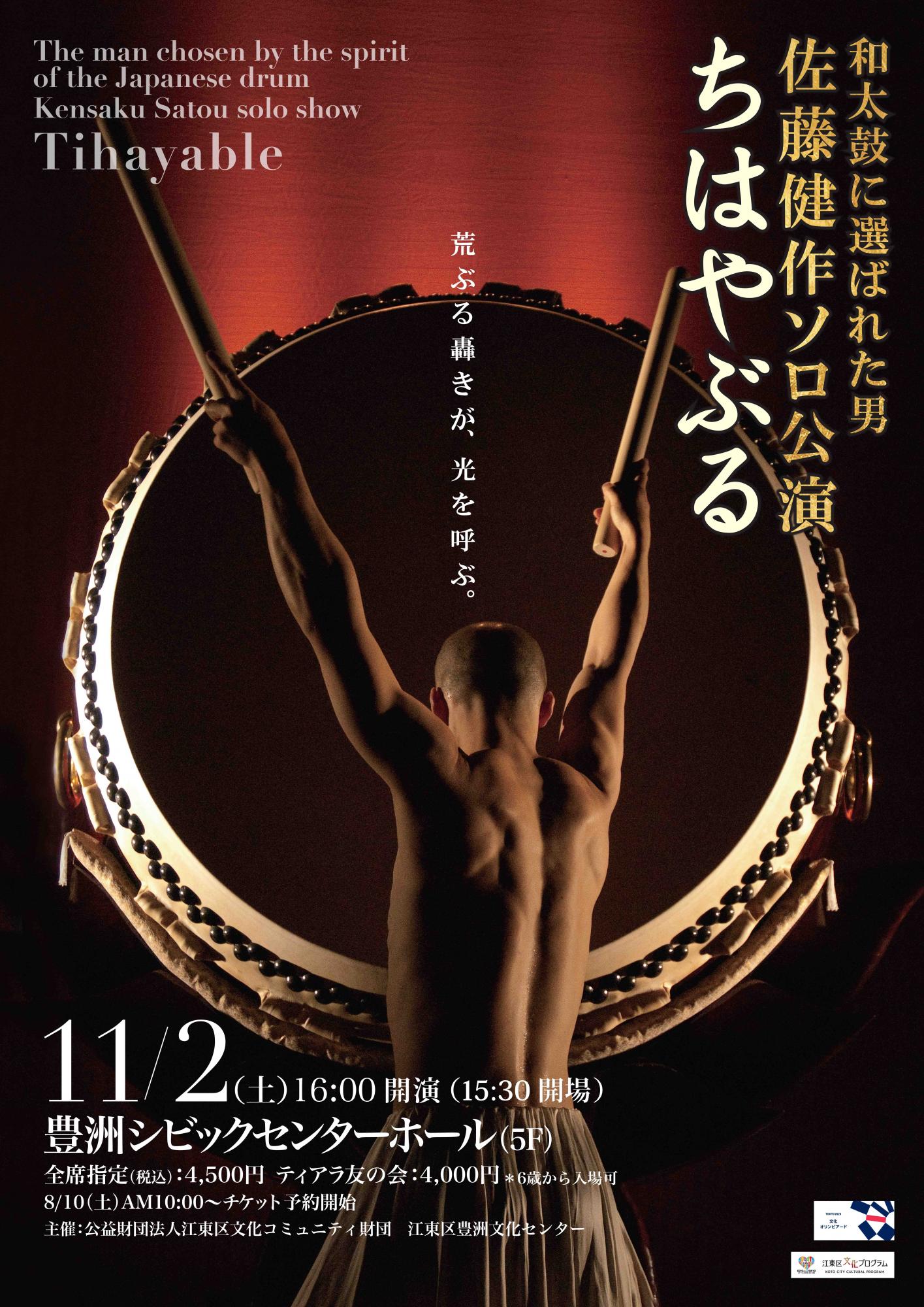 本公演は、鍛え上げた肉体と、和太鼓のみで創り上げるソロ公演。
