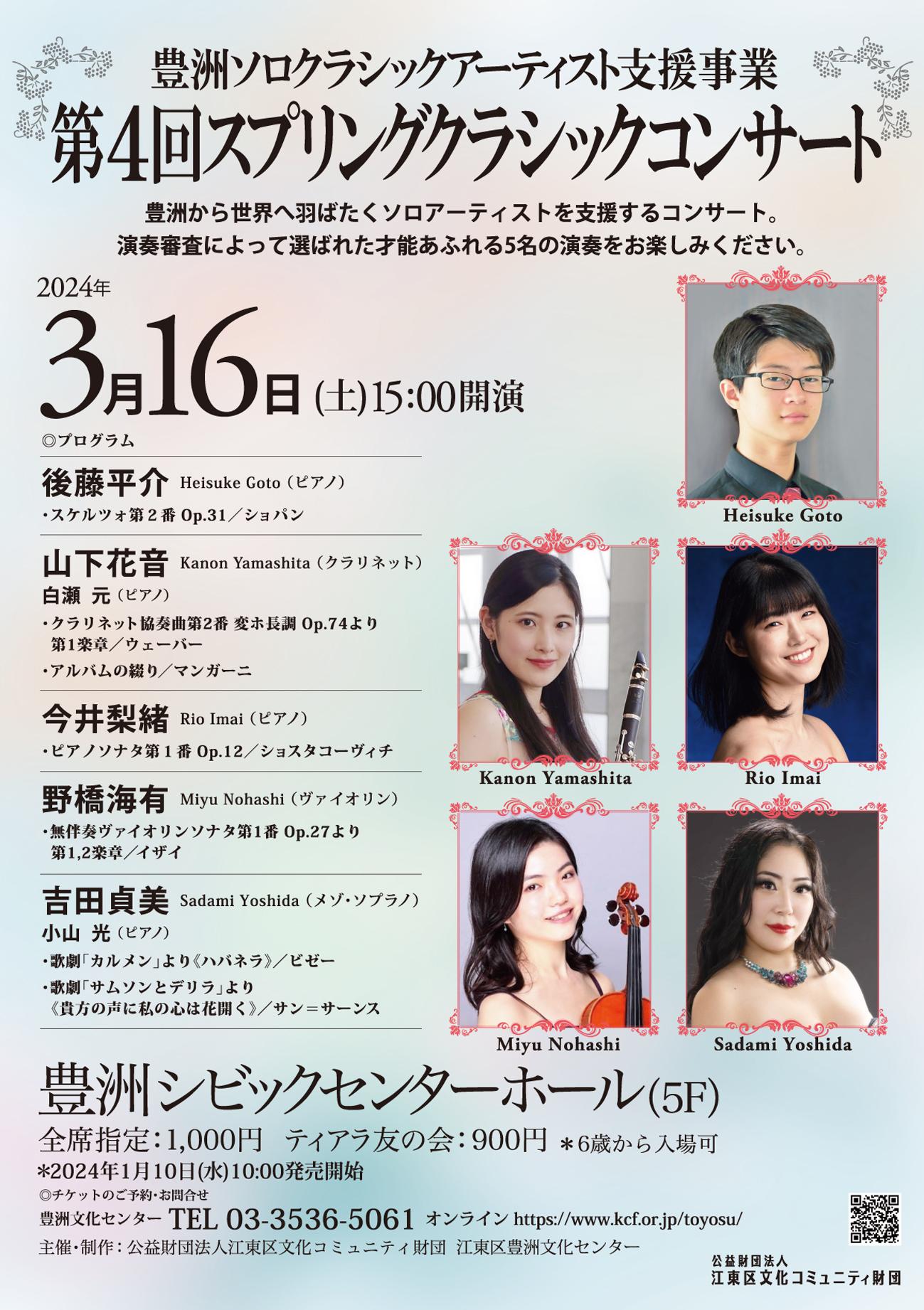「豊洲ソロクラシックアーティスト支援事業」は江東区を活動の拠点とするアーティストの発掘と支援を目的としたコンサートです。