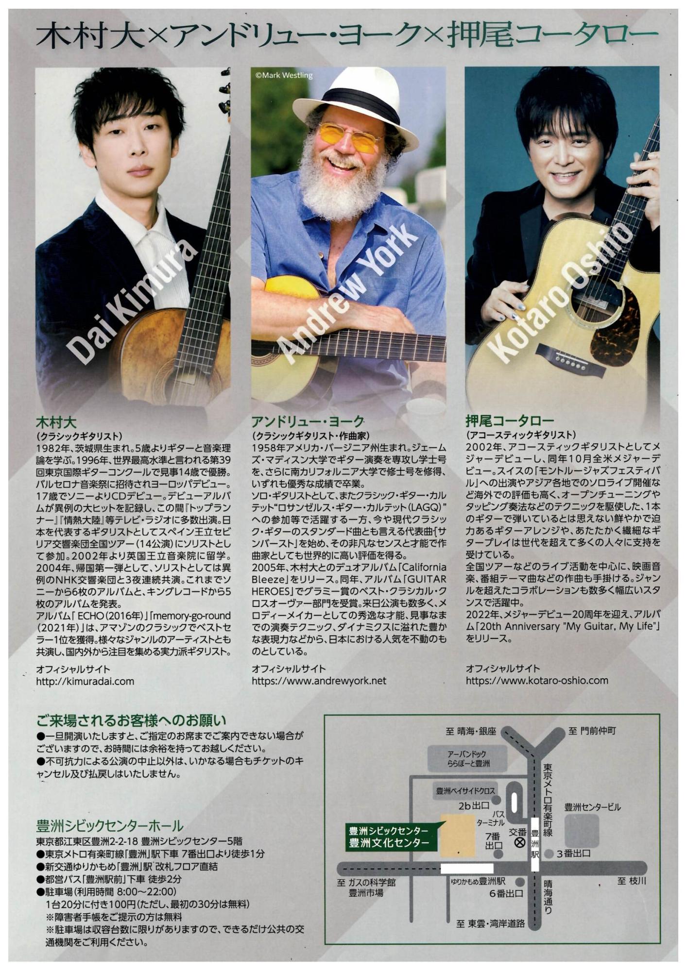 財団ホーム豊洲文化センターイベント情報木村大×アンドリュー・ヨーク×押尾コータロー