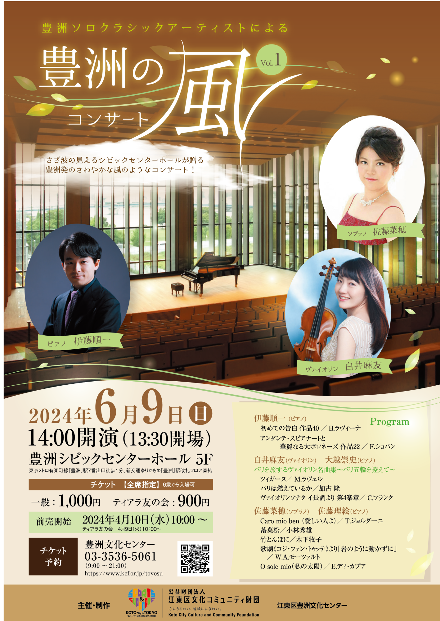 さざ波の見えるシビックセンターホールが贈る豊洲発のさわやかな風のようなコンサート!