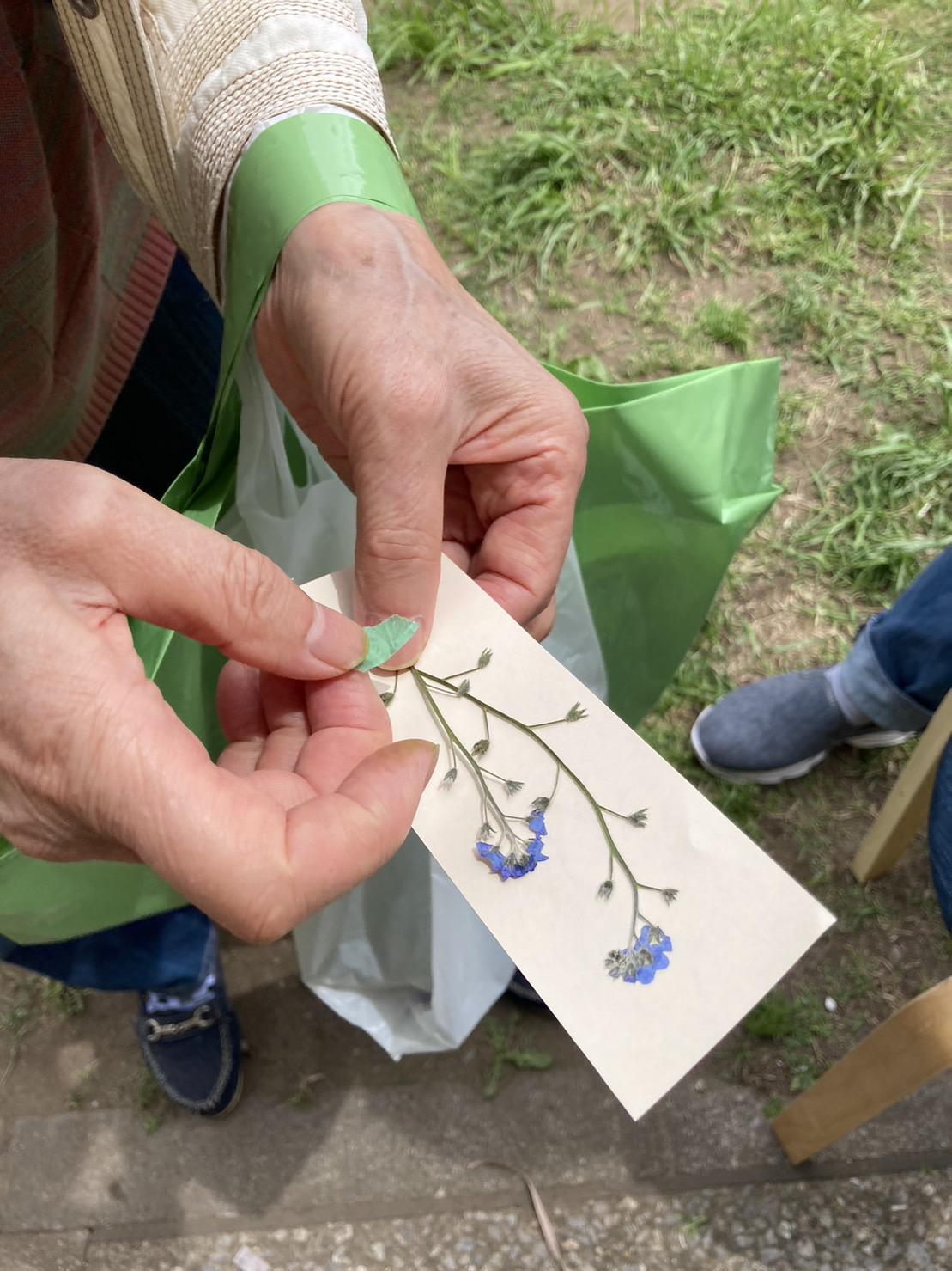豊洲公園内で育った花を押し花にし、オリジナルのしおり作りを行うワークショップです。