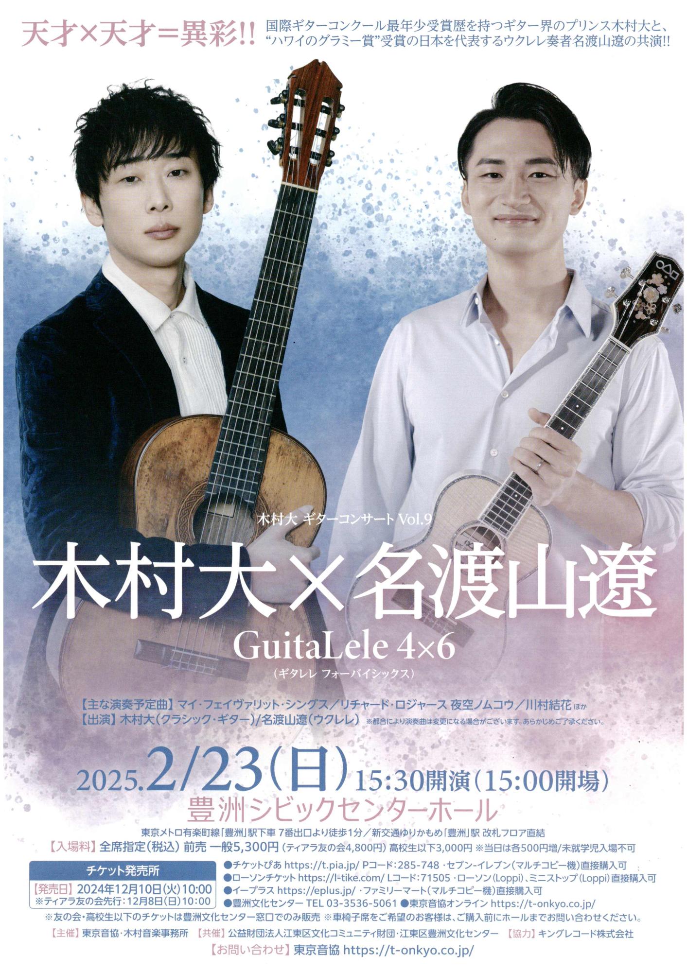 財団ホーム豊洲文化センターイベント情報木村大ギターコンサート vol.9 木村大×名渡山遼
